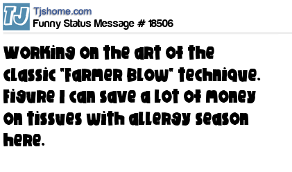 X is Working on the art of the classic "Farmer Blow" technique. Figure I can save a lot of money on tissues with allergy season here.