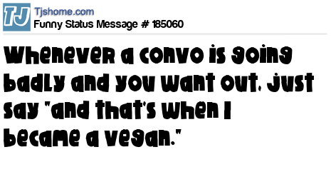 X says Whenever a convo is going badly and you want out, just say "and that's when I became a vegan."