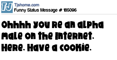 X says Ohhhh you’re an alpha male on the Internet. Here. Have a cookie.