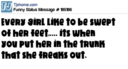 - # 198788 Every woman likes to be swept off her feet. It's when you put her in the trunk that she starts to freak out.