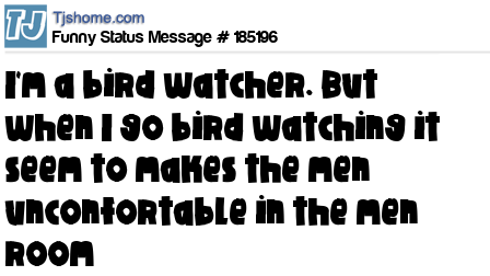 X is I'm a bird watcher. But when I go bird watching it seem to makes the men unconfortable in the men room