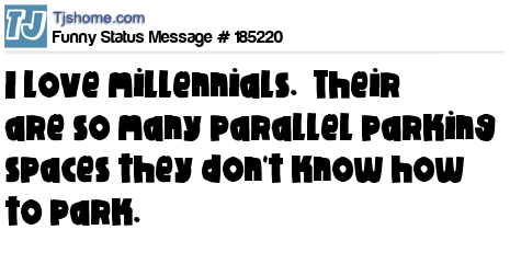 X says I love millennials. Their are so many parallel parking spaces they don't know how to park.