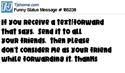 - # 127317 If you recieve something that says, ”Send it to all your friends,” then please don't consider me as your friend.