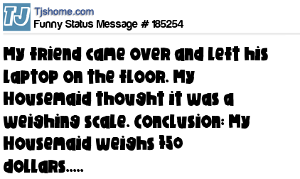 X says My friend came over and left his laptop on the floor. My Housemaid thought it was a weighing scale. Conclusion: My Housemaid weighs 750 dollars.....