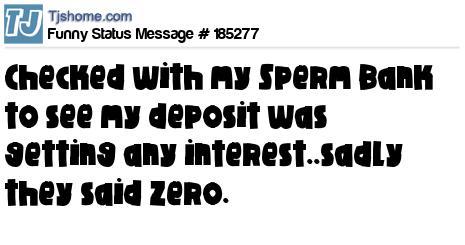 - # 157737 Made a deposit at the Sperm Bank....sadly, it's earning no interest.