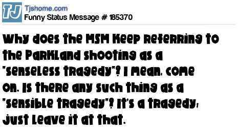 X says Why does the MSM keep referring to the Parkland shooting as a "senseless tragedy"? I mean, come on. Is there any such thing as a "sensible tragedy"? It's a tragedy; just leave it at that.