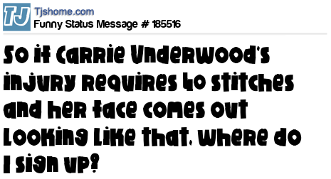 X says So if Carrie Underwood's injury requires 40 stitches and her face comes out looking like that, where do I sign up?