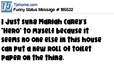 - # 194523 I just sung Mariah Carey's "Hero" to myself because it seems no one else in this house can put a new roll of toilet paper on the thing.