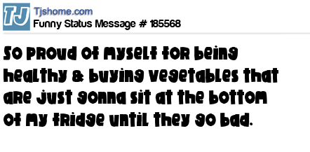 X says So proud of myself for being healthy & buying vegetables that are just gonna sit at the bottom of my fridge until they go bad.