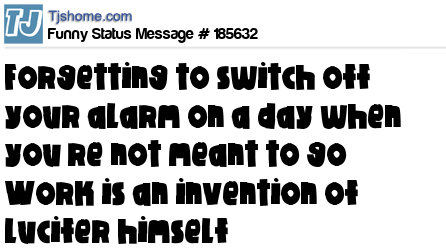 - # 148040 Forgetting to switch off your alarm on a day when you’re not meant to go anywhere is an invention of lucifer himself.