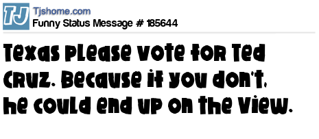 X is Texas please vote for Ted Cruz. Because if you don't, he could end up on the View.