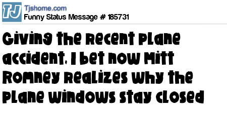 X says giving the recent plane accident, I bet now Mitt Romney realizes why the plane windows stay closed
