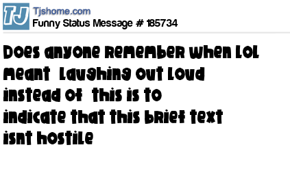 - # 149495 Remember the good old days when LOL meant "Laugh out loud" and not "I can't think of a good reply"?