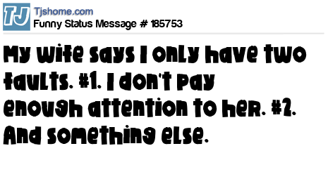 X is My wife says I only have two faults. #1. I don't pay enough attention to her. #2. And something else.