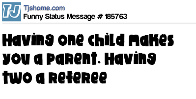 - # 72972 Having one child makes you a parent, having two makes you a referee and having more than two makes you a bouncer!