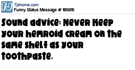X is Sound advice: Never keep your hemroid cream on the same shelf as your toothpaste.