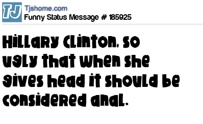 X says Hillary Clinton, so ugly that when she gives head it should be considered anal.