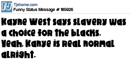 X is Kayne West says slavery was a choice for the blacks. Yeah, Kanye is real normal alright.