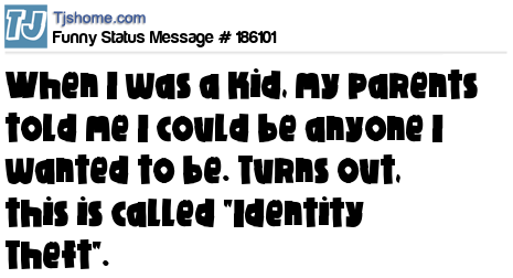- # 28743 As a young child my mom told me I could be anybody I wanted to be. Turns out the police call it identity theft.