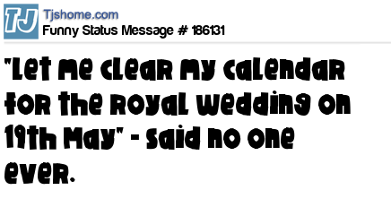 X says "Let me clear my calendar for the royal wedding on 19th May" - said no one ever.