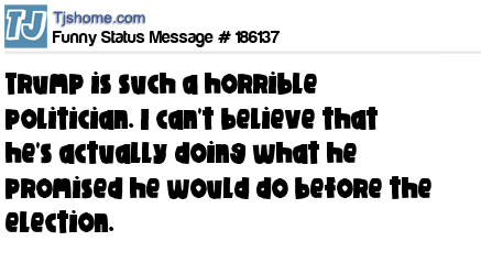 X says Trump is such a horrible politician. I can't believe that he's actually doing what he promised he would do before the election.