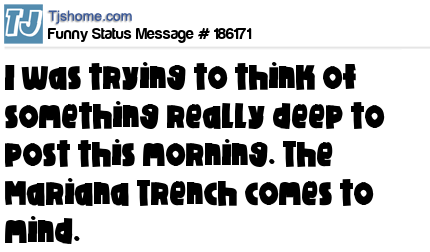 - # 180885 I was trying to think of something really deep to post on Facebook this morning: The Mariana Trench comes to mind.