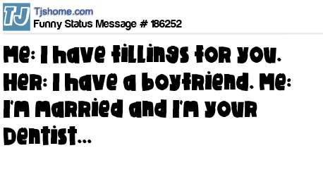 X Me: I have fillings for you. Her: I have a boyfriend. Me: I'm married and I'm your Dentist...
