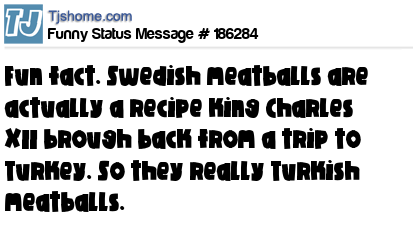 X is Fun fact. Swedish meatballs are actually a recipe king Charles XII brough back from a trip to Turkey. So they really Turkish meatballs.