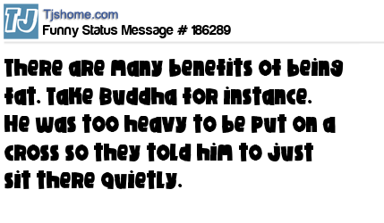 - # 100373 There are many benefits of being fat over being skinny. Take Buddha, for instance, he was too heavy to be put on a cross, so they told him to just sit there, quietly.