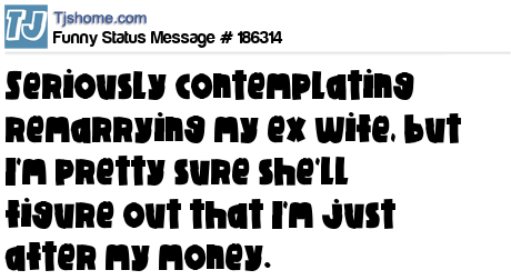 X says Seriously contemplating remarrying my ex wife, but I'm pretty sure she'll figure out that I'm just after my money.