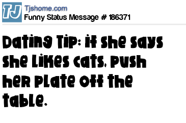 X says Dating Tip: if she says she likes cats, push her plate off the table.