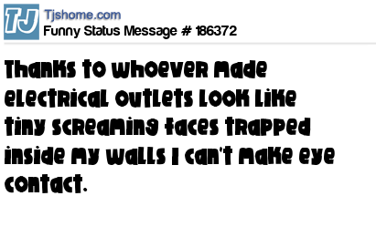 X says Thanks to whoever made electrical outlets look like tiny screaming faces trapped inside my walls I can't make eye contact.