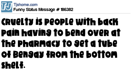 X is Cruelty is people with back pain having to bend over at the pharmacy to get a tube of Bengay from the bottom shelf.