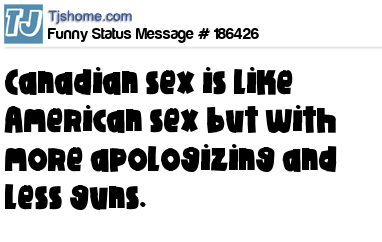X says Canadian sex is like American sex but with more apologizing and less guns.