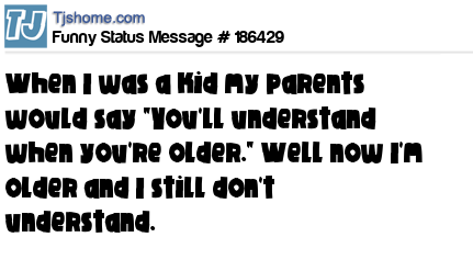 X says When I was a kid my parents would say "You'll understand when you're older." Well now I'm older and I still don't understand.
