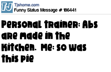 X says Personal trainer: Abs are made in the kitchen. Me: so was this pie