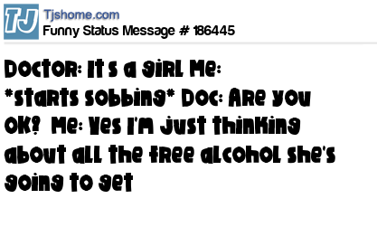 X says Doctor: It’s a girl Me: *starts sobbing* Doc: Are you OK? Me: Yes I'm just thinking about all the free alcohol she's going to get