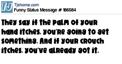 - # 190201 If your palm itches, you're going to get something. If your crotch itches, you've already got it.