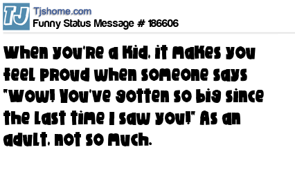 X says When you're a kid, it makes you feel proud when someone says "Wow! You've gotten so big since the last time I saw you!" As an adult, not so much.