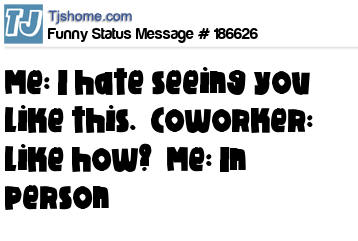 X says Me: I hate seeing you like this. Coworker: Like how? Me: In person