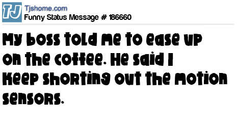 X says My boss told me to ease up on the coffee. He said I keep shorting out the motion sensors.