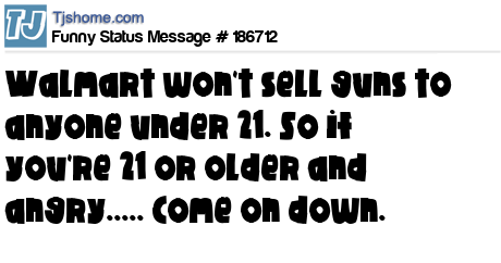 X is Walmart won't sell guns to anyone under 21. So if you're 21 or older and angry..... Come on down.