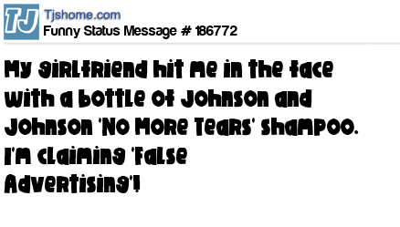 X says My girlfriend hit me in the face with a bottle of Johnson and Johnson 'No More Tears' shampoo. I'm claiming 'False Advertising'!