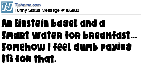 X says An Einstein bagel and a Smart Water for breakfast... Somehow I feel dumb paying $13 for that.
