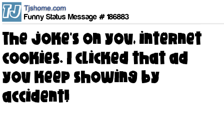 X The joke's on you, internet cookies. I clicked that ad you keep showing by accident!