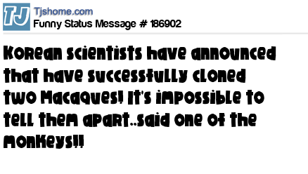 X is Korean scientists have announced that have successfully cloned two Macaques! It's impossible to tell them apart..said one of the monkeys!!