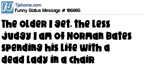 X says The older I get, the less judgy I am of Norman Bates spending his life with a dead lady in a chair