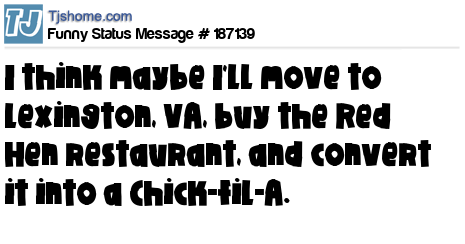 X says I think maybe I'll move to Lexington, VA, buy the Red Hen restaurant, and convert it into a Chick-fil-A.