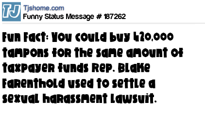 X says Fun Fact: You could buy 420,000 tampons for the same amount of taxpayer funds Rep. Blake Farenthold used to settle a sexual harassment lawsuit.