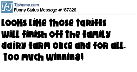 X is Looks like those tariffs will finish off the family dairy farm once and for all. Too much winning!